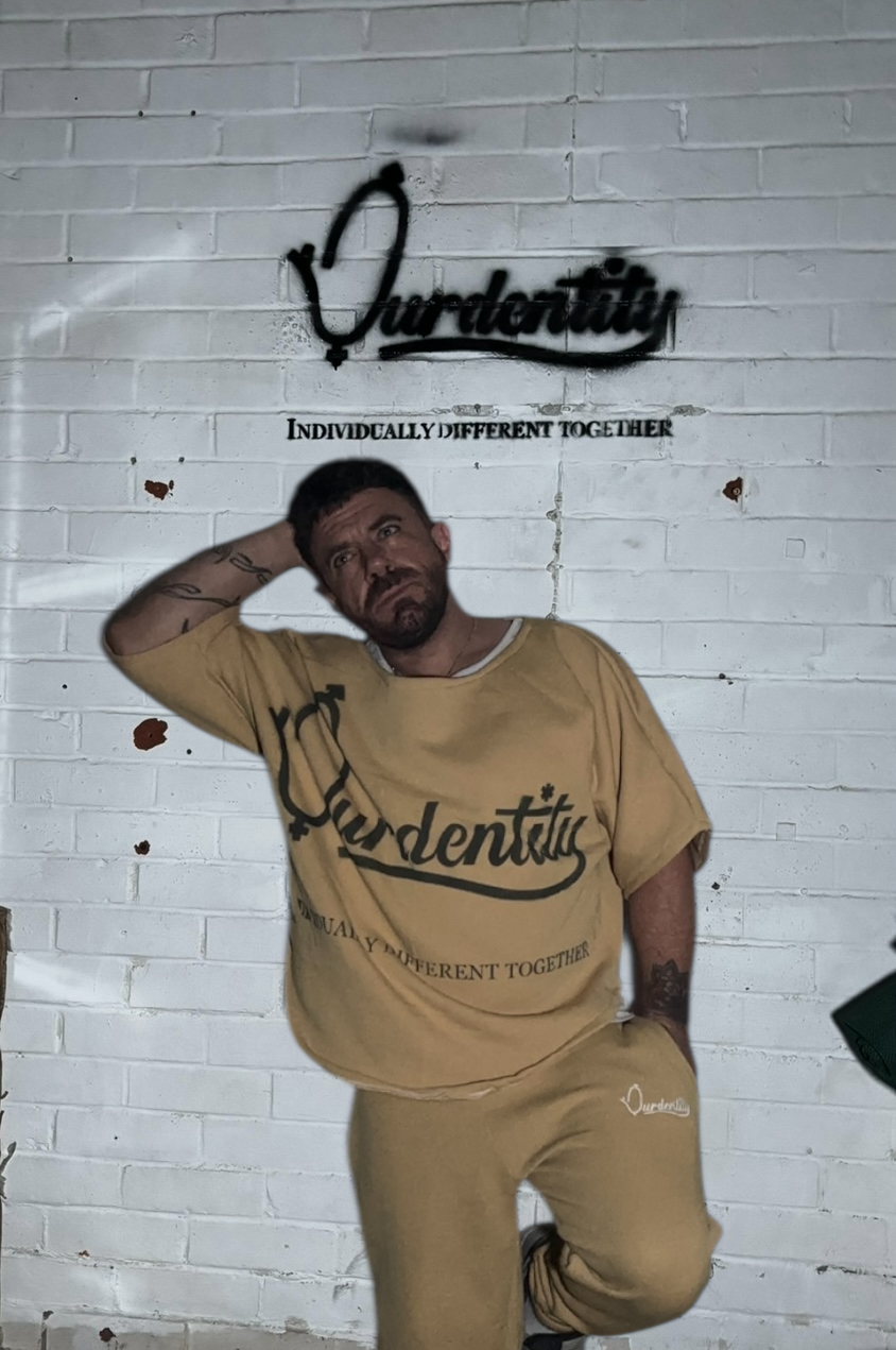The Ourdentity Pump Cover Gym Top with Ourdentity sprayed on the front with our specialist fabric spray.