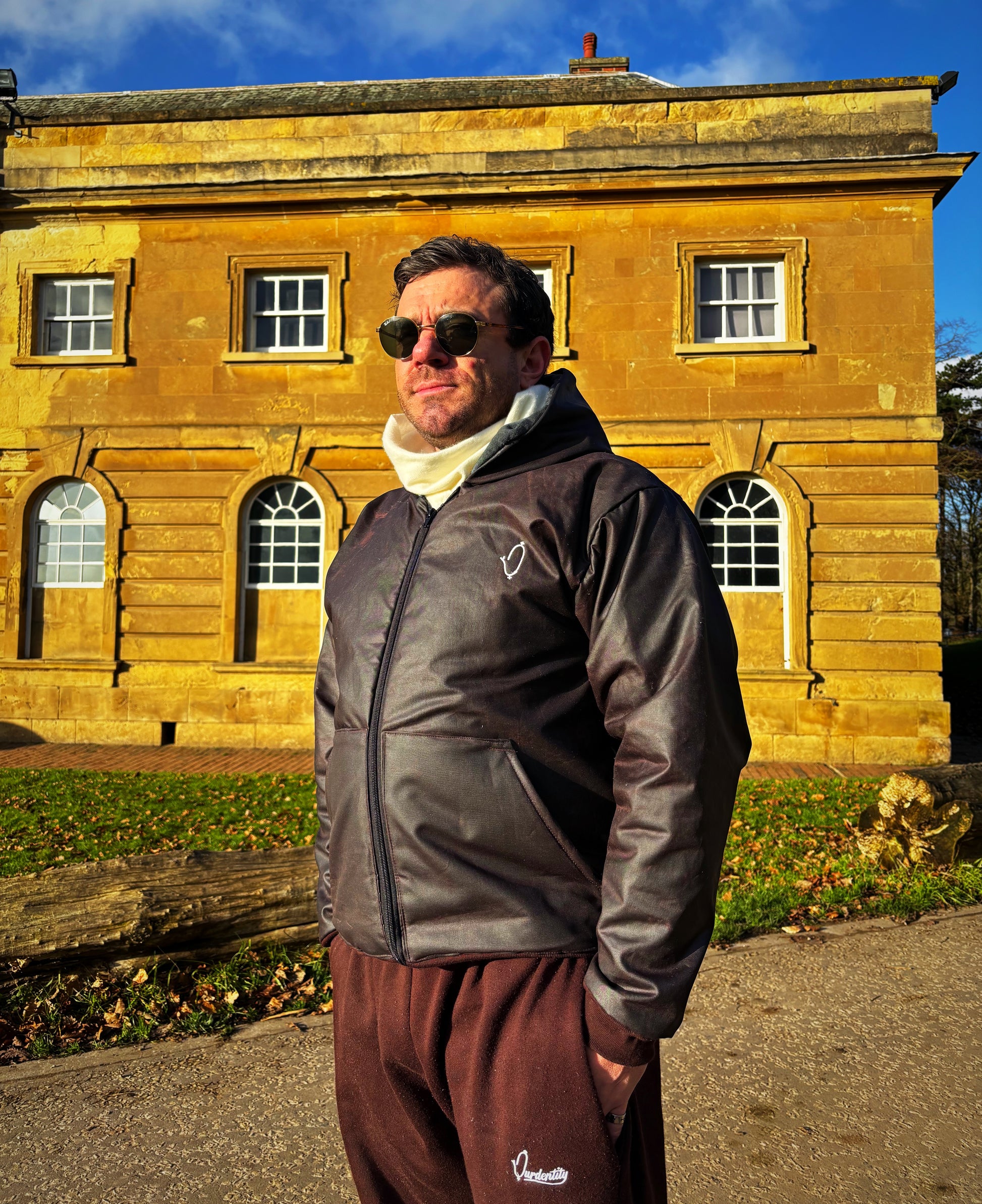 The Ourdentity Initial Wax Jacket in Dark Brown featuring our premium embroidery and satin lined hood.
