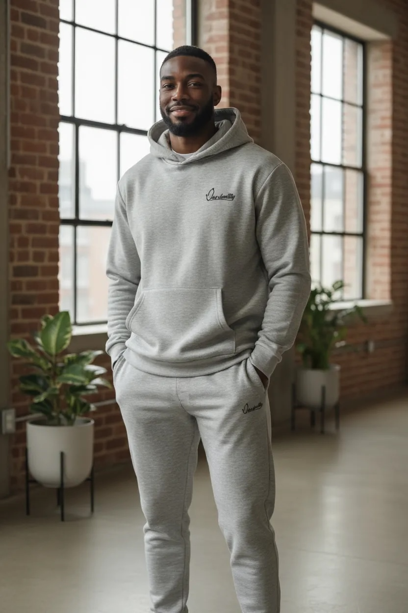 So why wait? Order now and experience the ultimate in comfort and style with our Ourdentity silver grey overhead unisex tracksuits!