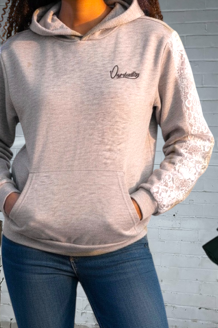 The Ourdentity tracksuit in Silver Grey featuring our premium embroidery, lace detailing and signature satin lined hood.