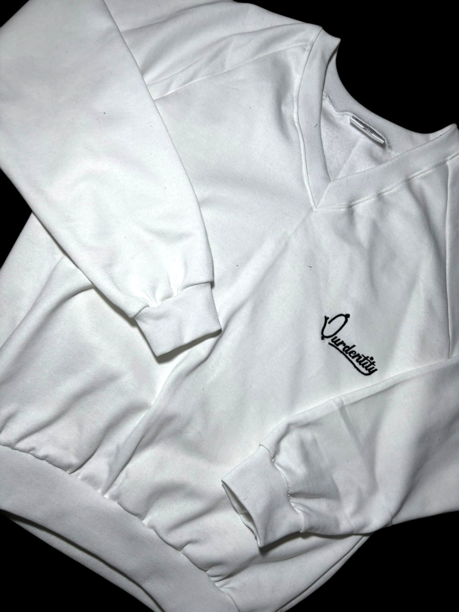 In summary, if you're looking to enhance your fashion statement effortlessly while staying comfortable throughout the day- look no further than our premium quality Ourdentity White V Neck Jumper!